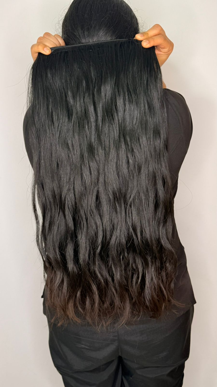 Descubre la elegancia de esta extensión de cabello 100% humano de 26 pulgadas de largo y 4 metros de ancho. Su color negro intenso con un sutil degradado hacia tonos ligeramente más claros en las puntas aporta profundidad y sofisticación, mientras que su textura ondulada con ondas suaves añade un movimiento natural y fluido que realza cada estilo. Con un brillo sedoso y volumen equilibrado de grosor medio a abundante, esta extensión confiere una caída armoniosa y saludable que refleja cuidado y vitalidad. Gracias a su ancho superior a 4 metros, es ideal para peinadas completas que transforman tu look con gracia y naturalidad.